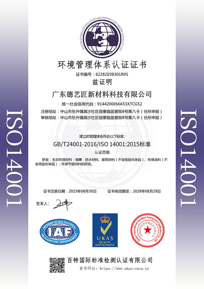 环境管理体系认证证书