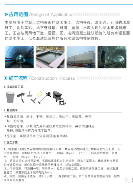 随着人们的环境保护意识的逐步提高,无机环保型防水材料应用范围越来越广,水泥基渗透结晶型防水材料已逐渐成为地下混凝土结构防水堵漏工程的主要新型防水材料。