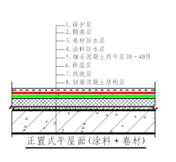 2、防水卷材与防水涂料复合应相容,防水涂膜宜设置在防水卷材的下边。